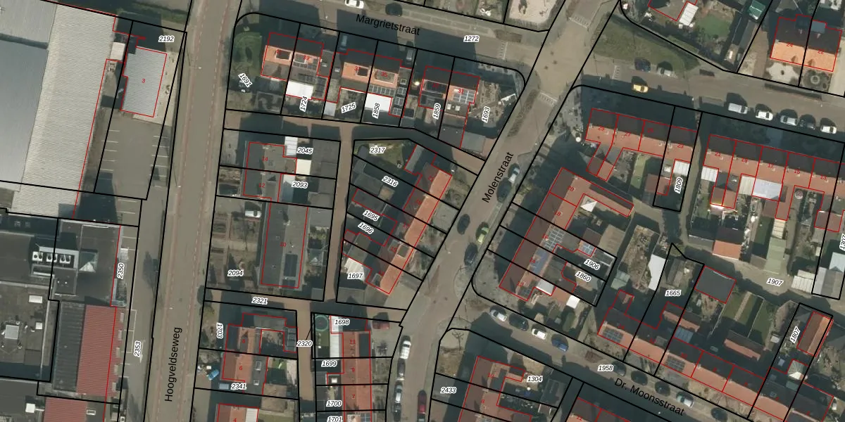 Molenstraat 19 is gelegen op kadastraal perceel MIL00G2316. Deze kadastrale aanduiding is uniek en wordt gebruikt door het Kadaster om eigendomsrechten en andere zakelijke rechten vast te leggen. Het perceel maakt onderdeel uit van de kadastrale gemeente Mill.