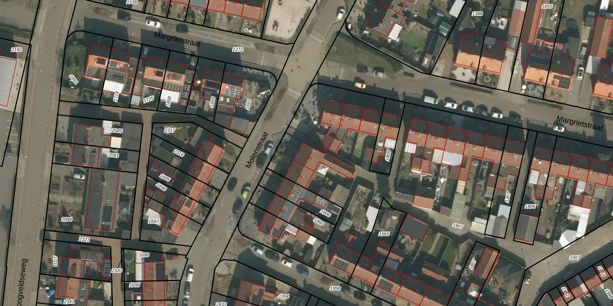Het perceel waarop Molenstraat 20 staat heeft een oppervlakte van 5092 m². Dit is een zeer groot perceel. De perceeloppervlakte wordt geregistreerd door het Kadaster. Gedetailleerde informatie over de maten van dit perceel kunt u vinden in het rapport Kadastrale kaart met maatvoering van Molenstraat 20.
