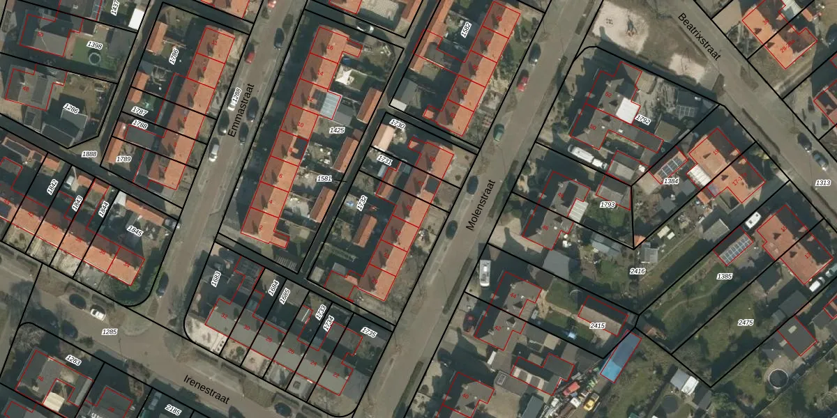 Molenstraat 55 is gelegen op kadastraal perceel MIL00G1732. Deze kadastrale aanduiding is uniek en wordt gebruikt door het Kadaster om eigendomsrechten en andere zakelijke rechten vast te leggen. Het perceel maakt onderdeel uit van de kadastrale gemeente Mill.