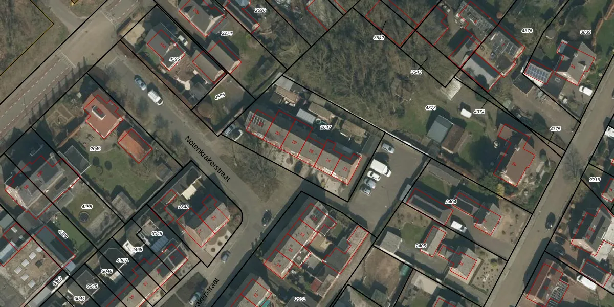 Notenkrakerstraat 26 is gelegen op kadastraal perceel MIL00F2647. Deze kadastrale aanduiding is uniek en wordt gebruikt door het Kadaster om eigendomsrechten en andere zakelijke rechten vast te leggen. Het perceel maakt onderdeel uit van de kadastrale gemeente Mill.