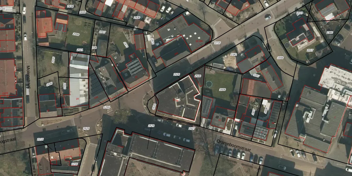 Oranjeboomstraat 18 is gelegen op kadastraal perceel MIL00G2530. Deze kadastrale aanduiding is uniek en wordt gebruikt door het Kadaster om eigendomsrechten en andere zakelijke rechten vast te leggen. Het perceel maakt onderdeel uit van de kadastrale gemeente Mill.