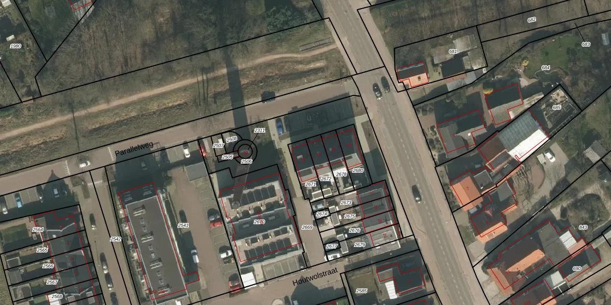 Parallelweg 42 is gelegen op kadastraal perceel MIL00D2671. Deze kadastrale aanduiding is uniek en wordt gebruikt door het Kadaster om eigendomsrechten en andere zakelijke rechten vast te leggen. Het perceel maakt onderdeel uit van de kadastrale gemeente Mill.