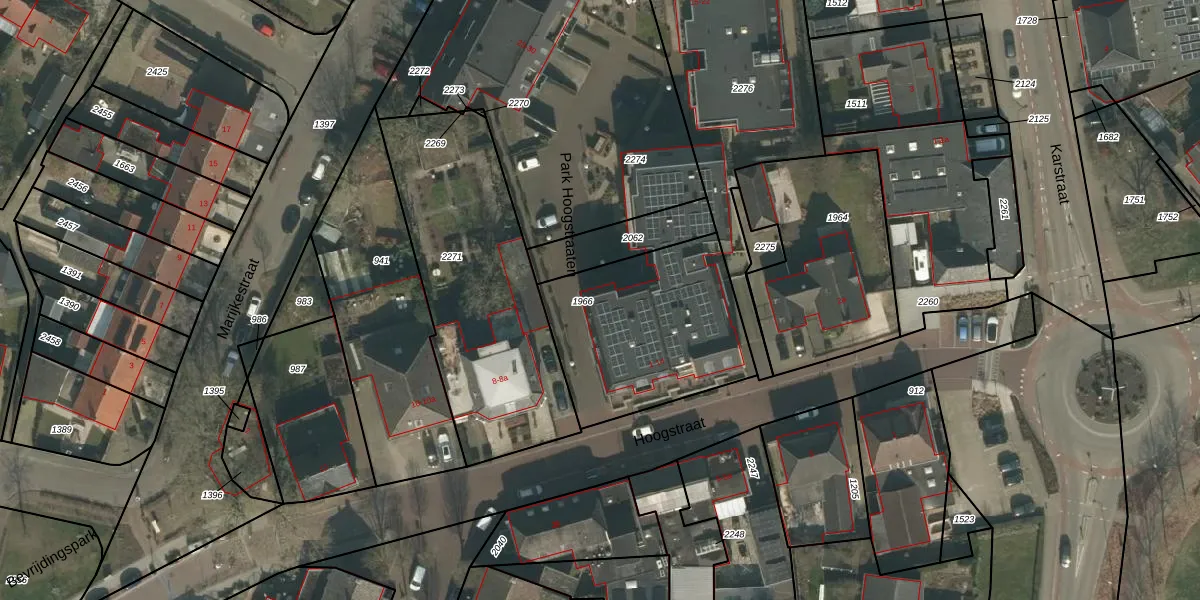 Park Hoogstraaten 1 is gelegen op kadastraal perceel MIL00G1966. Deze kadastrale aanduiding is uniek en wordt gebruikt door het Kadaster om eigendomsrechten en andere zakelijke rechten vast te leggen. Het perceel maakt onderdeel uit van de kadastrale gemeente Mill.
