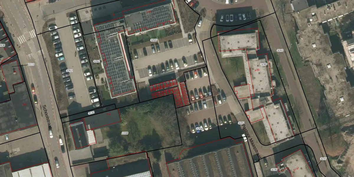 Het perceel waarop Pastoor Maasstraat 12-a staat heeft een oppervlakte van 2595 m². Dit is een zeer groot perceel. De perceeloppervlakte wordt geregistreerd door het Kadaster. Gedetailleerde informatie over de maten van dit perceel kunt u vinden in het rapport Kadastrale kaart met maatvoering van Pastoor Maasstraat 12-a.