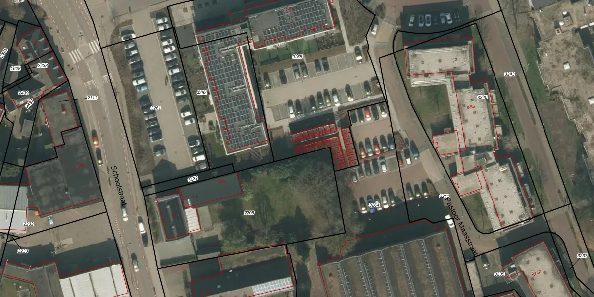 Het perceel waarop Pastoor Maasstraat 2-a staat heeft een oppervlakte van 2595 m². Dit is een zeer groot perceel. De perceeloppervlakte wordt geregistreerd door het Kadaster. Gedetailleerde informatie over de maten van dit perceel kunt u vinden in het rapport Kadastrale kaart met maatvoering van Pastoor Maasstraat 2-a.