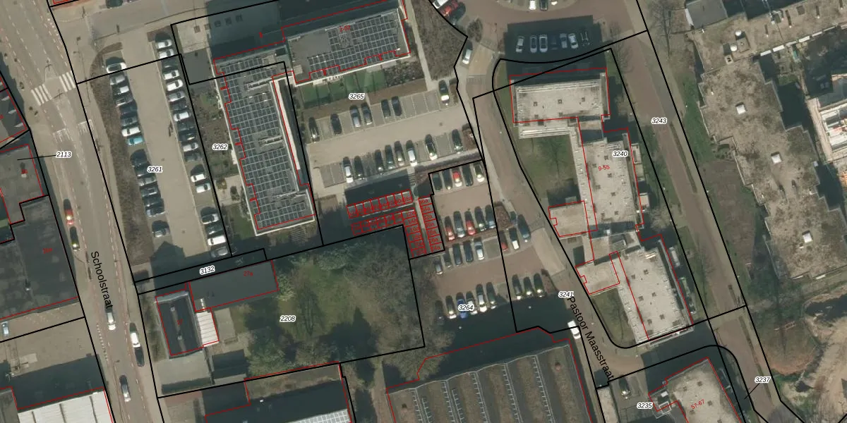 Het perceel waarop Pastoor Maasstraat 34-a staat heeft een oppervlakte van 2595 m². Dit is een zeer groot perceel. De perceeloppervlakte wordt geregistreerd door het Kadaster. Gedetailleerde informatie over de maten van dit perceel kunt u vinden in het rapport Kadastrale kaart met maatvoering van Pastoor Maasstraat 34-a.