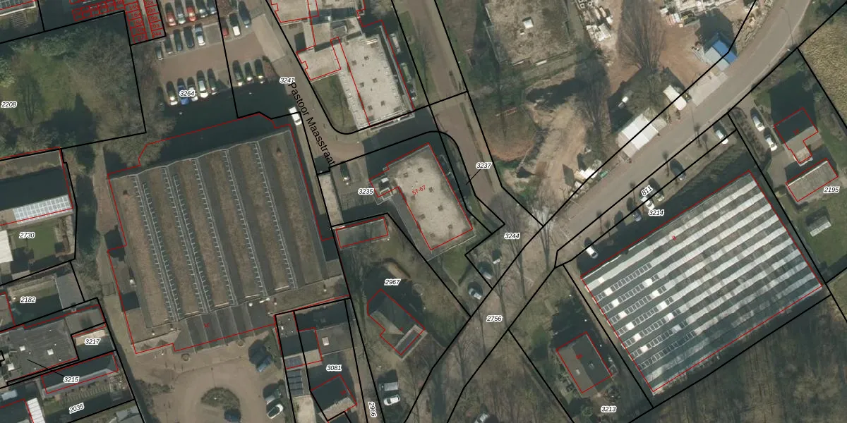 Pastoor Maasstraat 65 is gelegen op kadastraal perceel MIL00B3235. Deze kadastrale aanduiding is uniek en wordt gebruikt door het Kadaster om eigendomsrechten en andere zakelijke rechten vast te leggen. Het perceel maakt onderdeel uit van de kadastrale gemeente Mill.