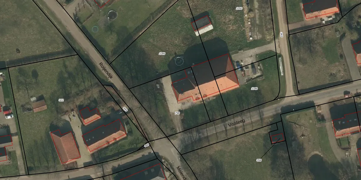 Het perceel waarop Roijendijk 2 staat heeft een oppervlakte van 1002 m². Dit is een zeer groot perceel. De perceeloppervlakte wordt geregistreerd door het Kadaster. Gedetailleerde informatie over de maten van dit perceel kunt u vinden in het rapport Kadastrale kaart met maatvoering van Roijendijk 2.