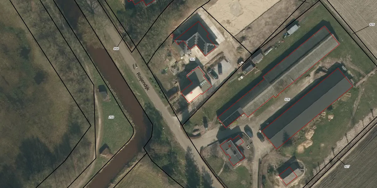 Het perceel waarop Roijendijk 38 staat heeft een oppervlakte van 1790 m². Dit is een zeer groot perceel. De perceeloppervlakte wordt geregistreerd door het Kadaster. Gedetailleerde informatie over de maten van dit perceel kunt u vinden in het rapport Kadastrale kaart met maatvoering van Roijendijk 38.