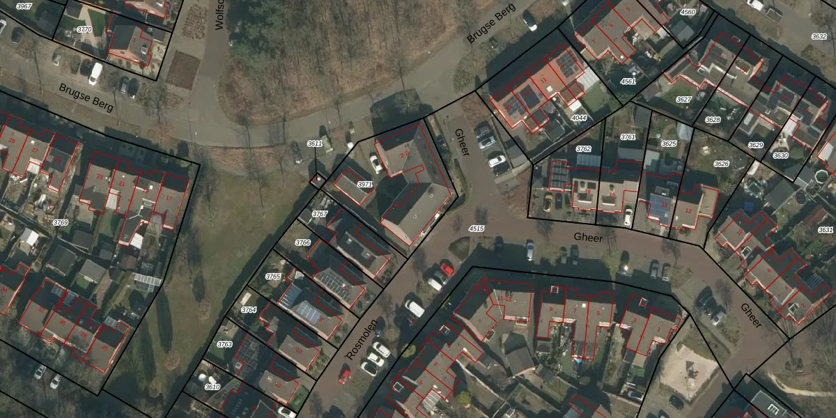 Het perceel waarop Rosmolen 2-g staat heeft een oppervlakte van 620 m². Dit is een groot perceel. De perceeloppervlakte wordt geregistreerd door het Kadaster. Gedetailleerde informatie over de maten van dit perceel kunt u vinden in het rapport Kadastrale kaart met maatvoering van Rosmolen 2-g.