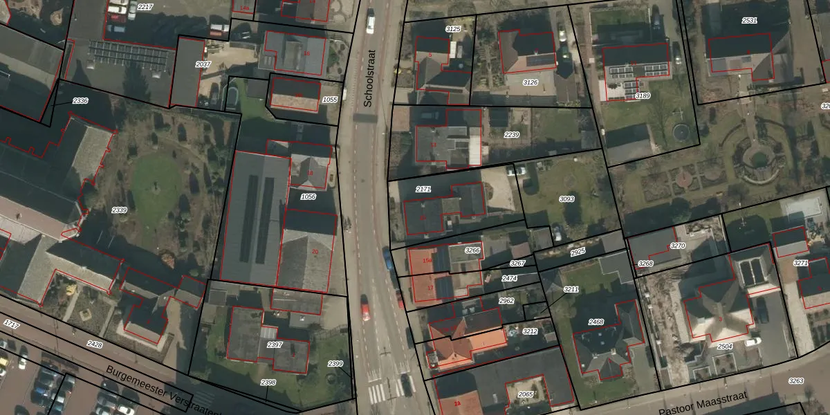 Schoolstraat 15 is gelegen op kadastraal perceel MIL00B2171. Deze kadastrale aanduiding is uniek en wordt gebruikt door het Kadaster om eigendomsrechten en andere zakelijke rechten vast te leggen. Het perceel maakt onderdeel uit van de kadastrale gemeente Mill.