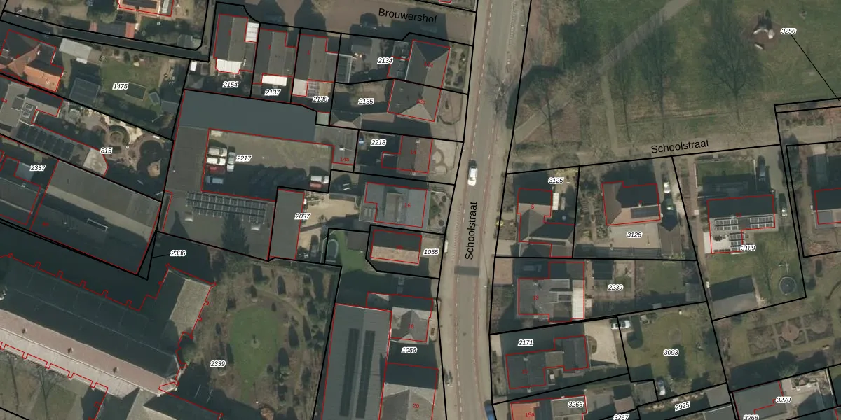 Het perceel waarop Schoolstraat 16 staat heeft een oppervlakte van 590 m². Dit is een groot perceel. De perceeloppervlakte wordt geregistreerd door het Kadaster. Gedetailleerde informatie over de maten van dit perceel kunt u vinden in het rapport Kadastrale kaart met maatvoering van Schoolstraat 16.