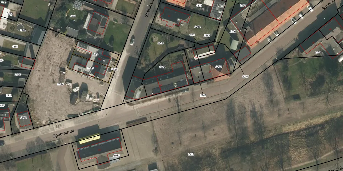 Spoorstraat 30 is gelegen op kadastraal perceel MIL00G2221. Deze kadastrale aanduiding is uniek en wordt gebruikt door het Kadaster om eigendomsrechten en andere zakelijke rechten vast te leggen. Het perceel maakt onderdeel uit van de kadastrale gemeente Mill.