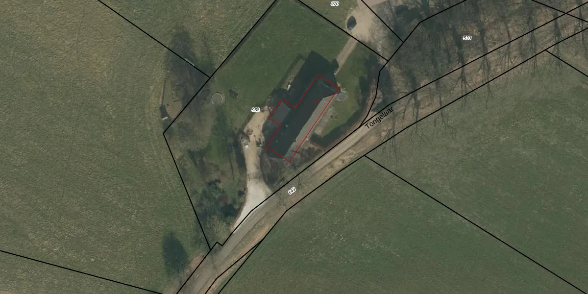 Tongelaar 20 is gelegen op kadastraal perceel MIL00N968. Deze kadastrale aanduiding is uniek en wordt gebruikt door het Kadaster om eigendomsrechten en andere zakelijke rechten vast te leggen. Het perceel maakt onderdeel uit van de kadastrale gemeente Mill.