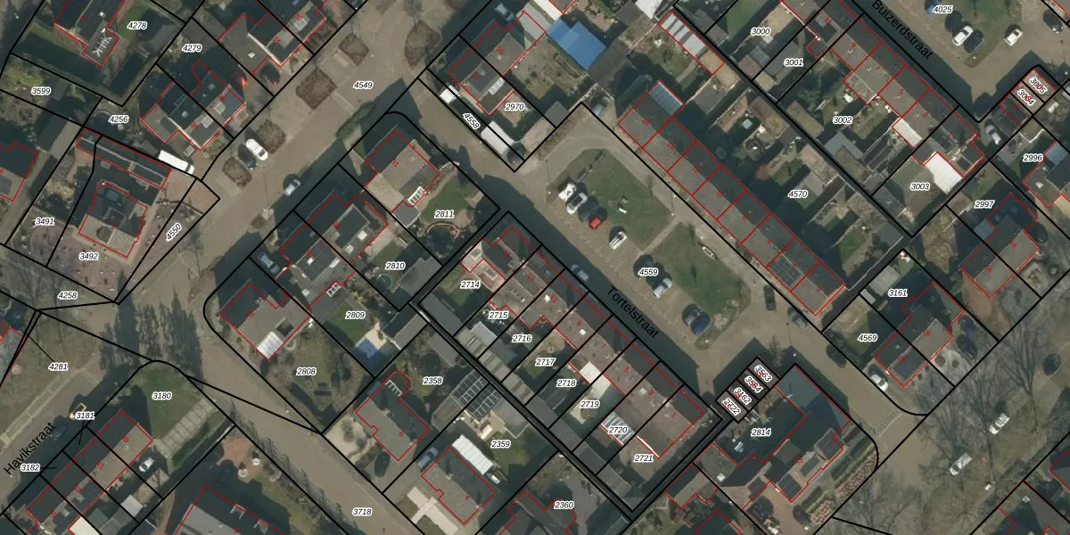 Gebruik de zoekbalk of klik op een perceel voor informatie over de adressen binnen dit perceel.