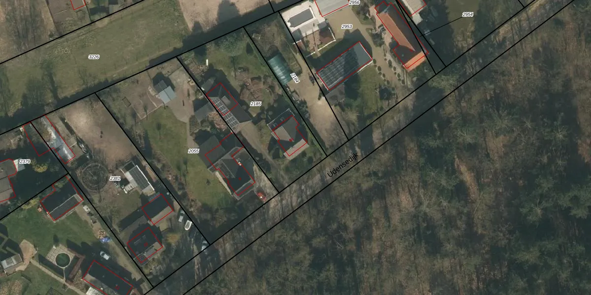 Het perceel waarop Udensedijk 6-a staat heeft een oppervlakte van 1238 m². Dit is een zeer groot perceel. De perceeloppervlakte wordt geregistreerd door het Kadaster. Gedetailleerde informatie over de maten van dit perceel kunt u vinden in het rapport Kadastrale kaart met maatvoering van Udensedijk 6-a.