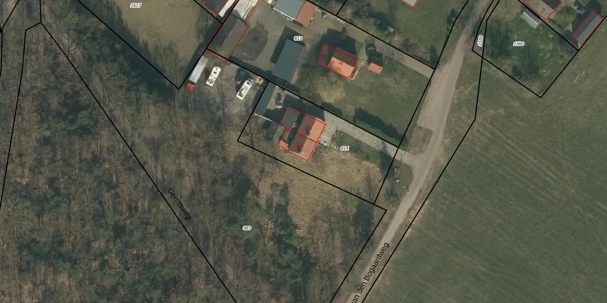 van den Bogaardweg 38 is gelegen op kadastraal perceel MIL00R814. Deze kadastrale aanduiding is uniek en wordt gebruikt door het Kadaster om eigendomsrechten en andere zakelijke rechten vast te leggen. Het perceel maakt onderdeel uit van de kadastrale gemeente Mill.