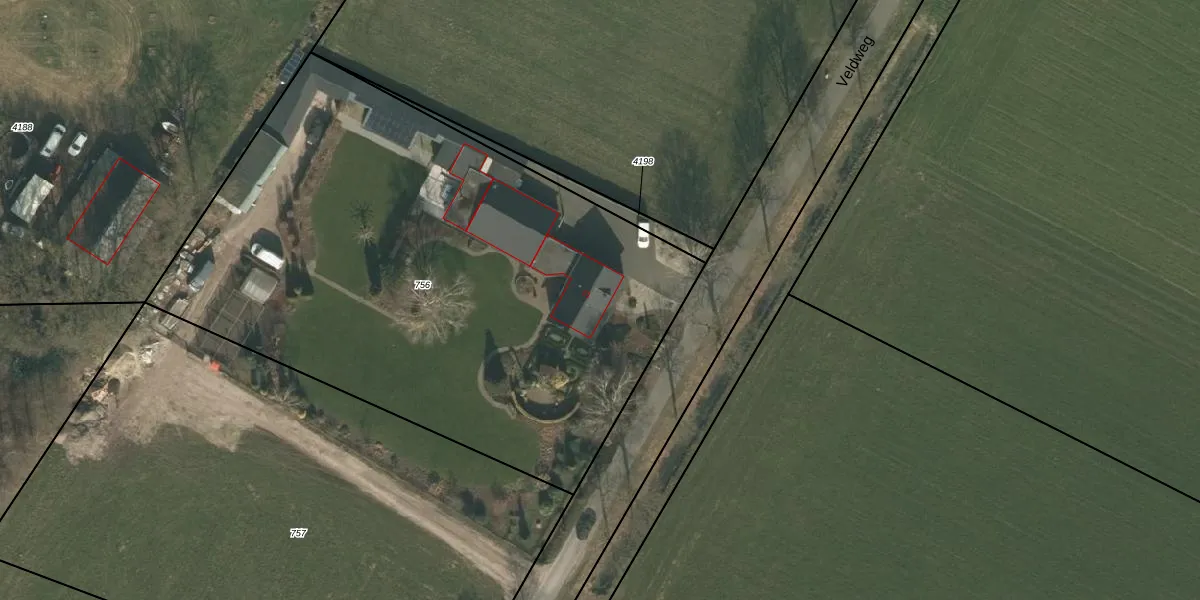 Veldweg 21 is gelegen op kadastraal perceel MIL00F756. Deze kadastrale aanduiding is uniek en wordt gebruikt door het Kadaster om eigendomsrechten en andere zakelijke rechten vast te leggen. Het perceel maakt onderdeel uit van de kadastrale gemeente Mill.