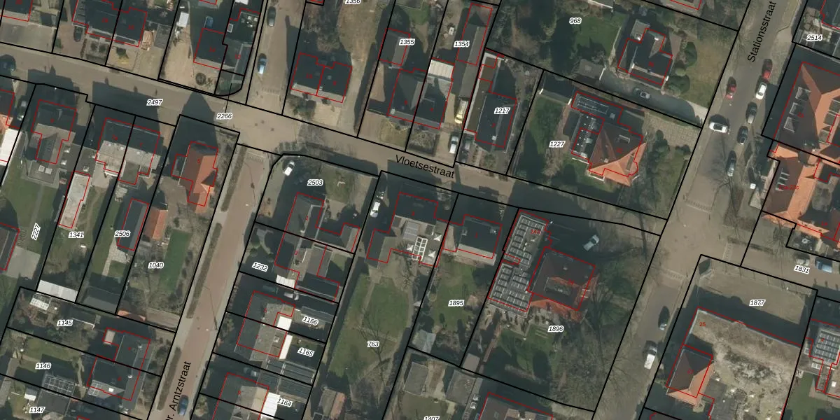 Het perceel waarop Vloetsestraat 3 staat heeft een oppervlakte van 1540 m². Dit is een zeer groot perceel. De perceeloppervlakte wordt geregistreerd door het Kadaster. Gedetailleerde informatie over de maten van dit perceel kunt u vinden in het rapport Kadastrale kaart met maatvoering van Vloetsestraat 3.