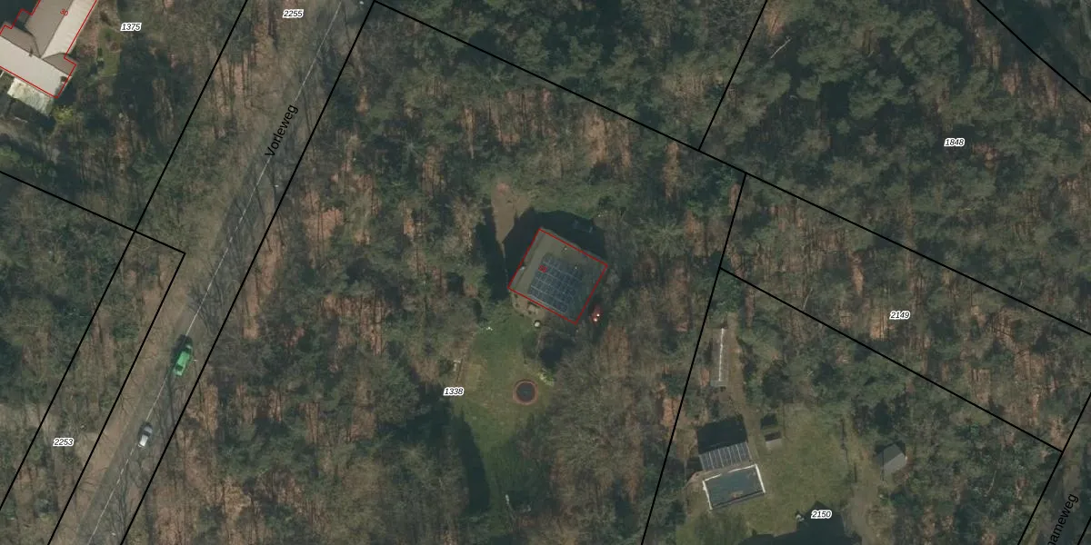 Het perceel waarop Vorleweg 55 staat heeft een oppervlakte van 1,0 ha. Dit is een zeer groot perceel. De perceeloppervlakte wordt geregistreerd door het Kadaster. Gedetailleerde informatie over de maten van dit perceel kunt u vinden in het rapport Kadastrale kaart met maatvoering van Vorleweg 55.