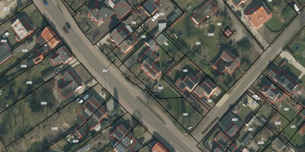Het adres ligt op het perceel MIL00-R-706, dat zich in de kadastrale gemeente Mill bevindt. Het perceel is kleiner dan gemiddeld in Mill. Het perceel is 800 m² groot, terwijl het gemiddelde ligt op 6185,19 m². De grootste perceeloppervlakte in de kadastrale gemeente is 92,9 ha. De kleinste oppervlakte bedraagt 0 m². Er zijn 2 adressen aanwezig op het perceel. In de Basisregistratie Kadaster (BRK) werden de grenzen van het perceel geregistreerd op 28-09-2006.