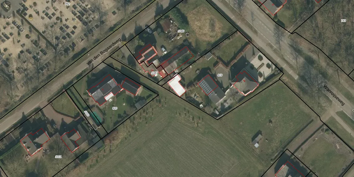 Het perceel waarop Wanroijseweg 44-x staat heeft een oppervlakte van 1820 m². Dit is een zeer groot perceel. De perceeloppervlakte wordt geregistreerd door het Kadaster. Gedetailleerde informatie over de maten van dit perceel kunt u vinden in het rapport Kadastrale kaart met maatvoering van Wanroijseweg 44-x.
