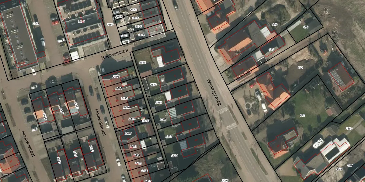 Gebruik de zoekbalk of klik op een perceel voor informatie over de adressen binnen dit perceel.