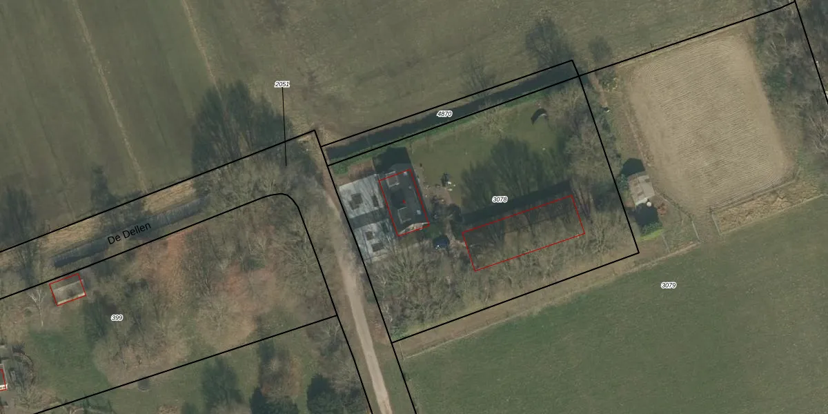Het perceel waarop De Dellen 4 staat heeft een oppervlakte van 2920 m². Dit is een zeer groot perceel. De perceeloppervlakte wordt geregistreerd door het Kadaster. Gedetailleerde informatie over de maten van dit perceel kunt u vinden in het rapport Kadastrale kaart met maatvoering van De Dellen 4.
