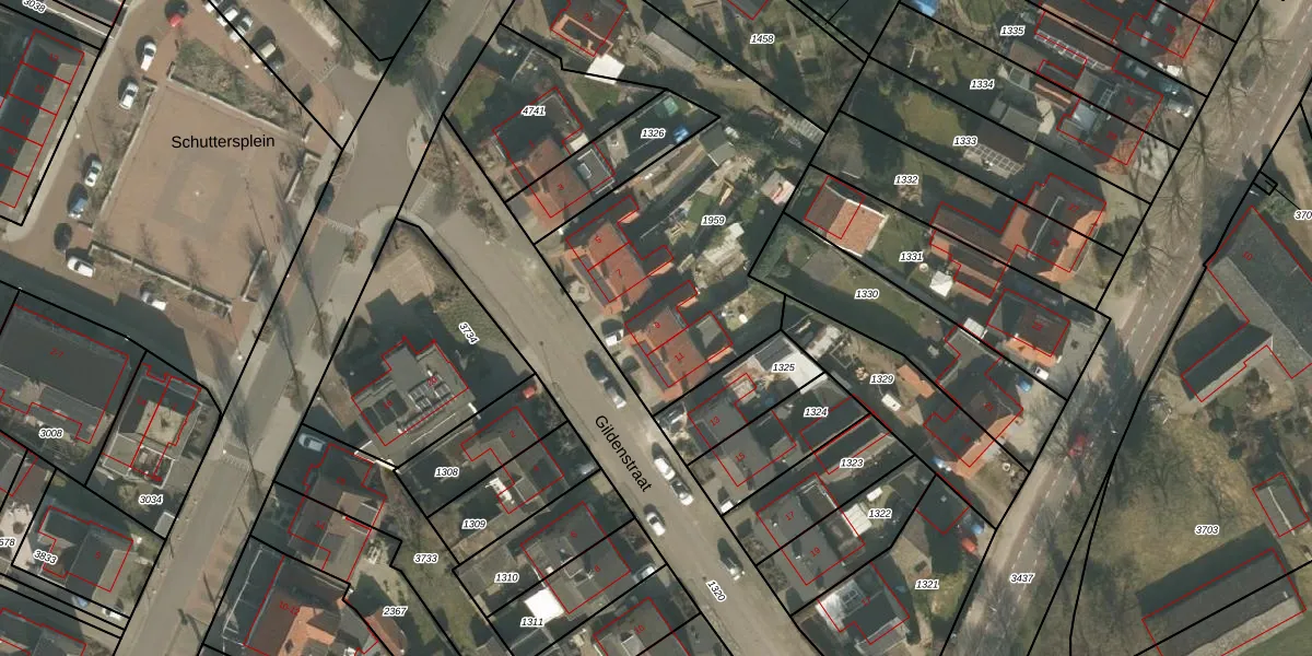 Gildenstraat 9 is gelegen op kadastraal perceel OTS00D1959. Deze kadastrale aanduiding is uniek en wordt gebruikt door het Kadaster om eigendomsrechten en andere zakelijke rechten vast te leggen. Het perceel maakt onderdeel uit van de kadastrale gemeente Ottersum.