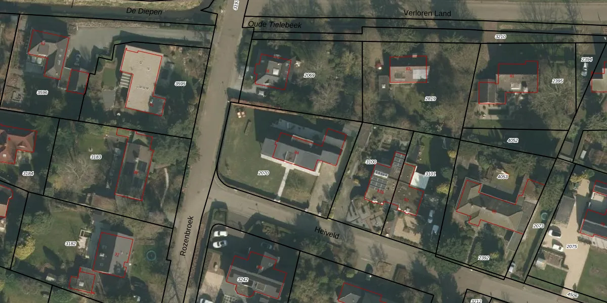 Het perceel waarop Heiveld 84 staat heeft een oppervlakte van 1245 m². Dit is een zeer groot perceel. De perceeloppervlakte wordt geregistreerd door het Kadaster. Gedetailleerde informatie over de maten van dit perceel kunt u vinden in het rapport Kadastrale kaart met maatvoering van Heiveld 84.