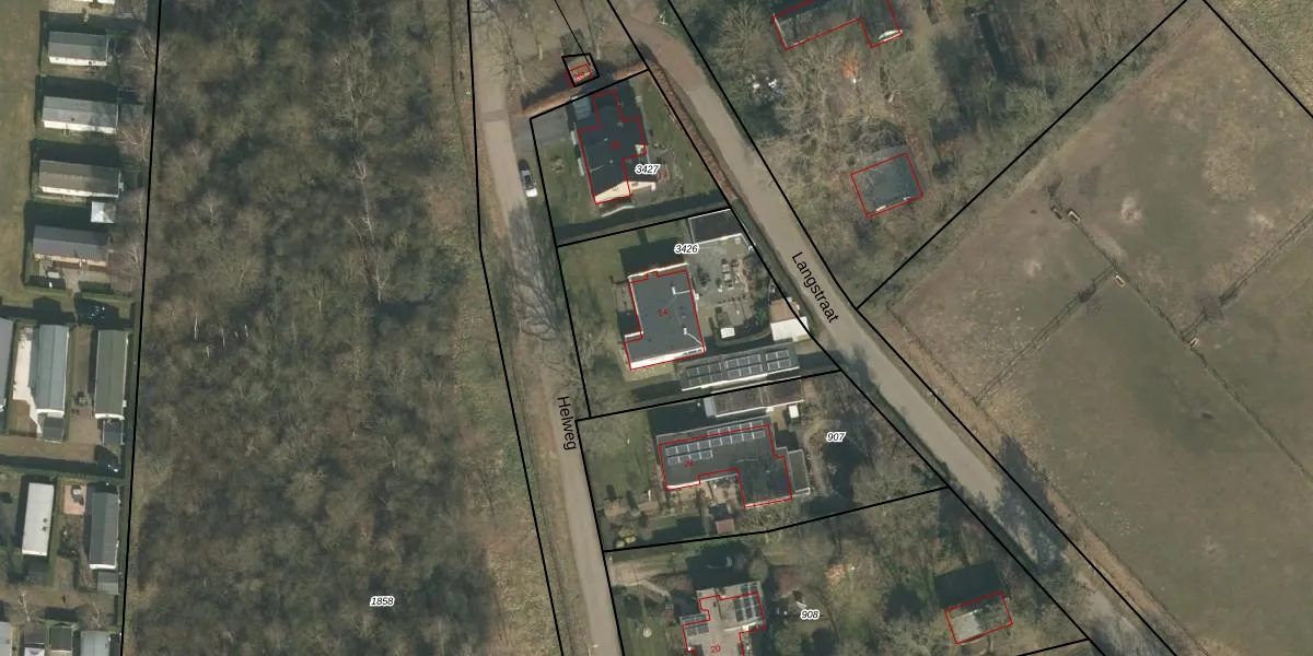 Het perceel waarop Helweg 24 staat heeft een oppervlakte van 860 m². Dit is een groot perceel. De perceeloppervlakte wordt geregistreerd door het Kadaster. Gedetailleerde informatie over de maten van dit perceel kunt u vinden in het rapport Kadastrale kaart met maatvoering van Helweg 24.