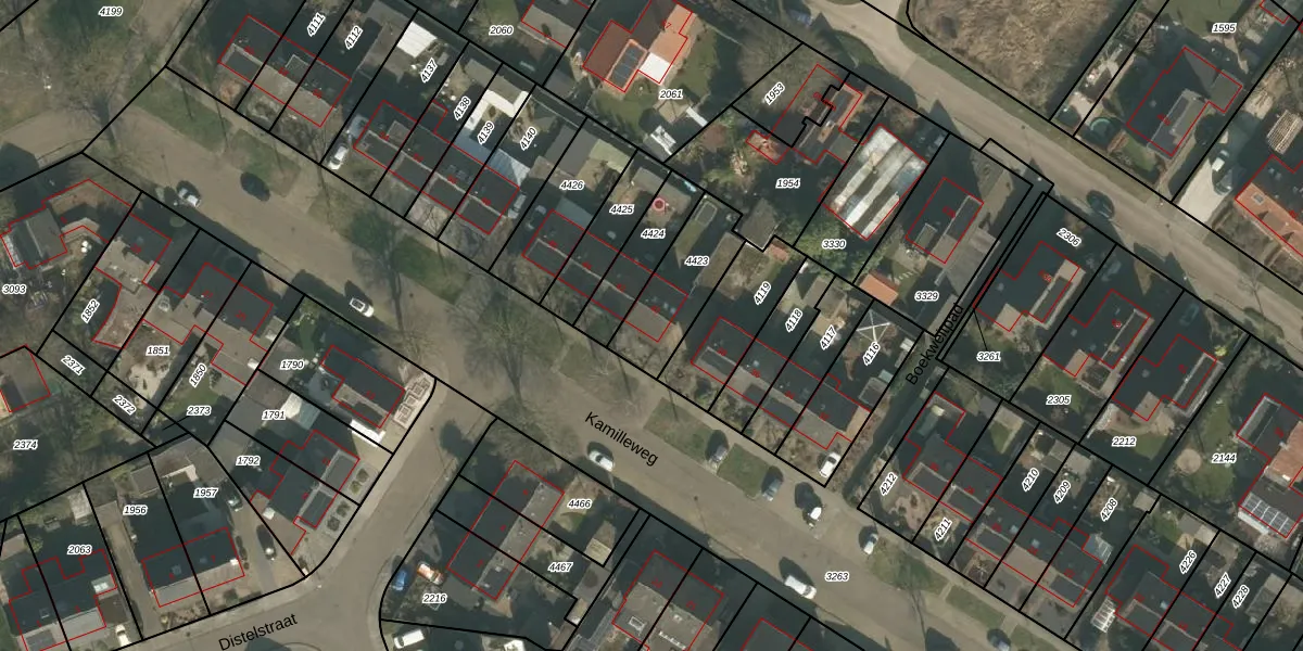 Het perceel waarop Kamilleweg 40 staat heeft een oppervlakte van 255 m². Dit is een middelgroot perceel. De perceeloppervlakte wordt geregistreerd door het Kadaster. Gedetailleerde informatie over de maten van dit perceel kunt u vinden in het rapport Kadastrale kaart met maatvoering van Kamilleweg 40.