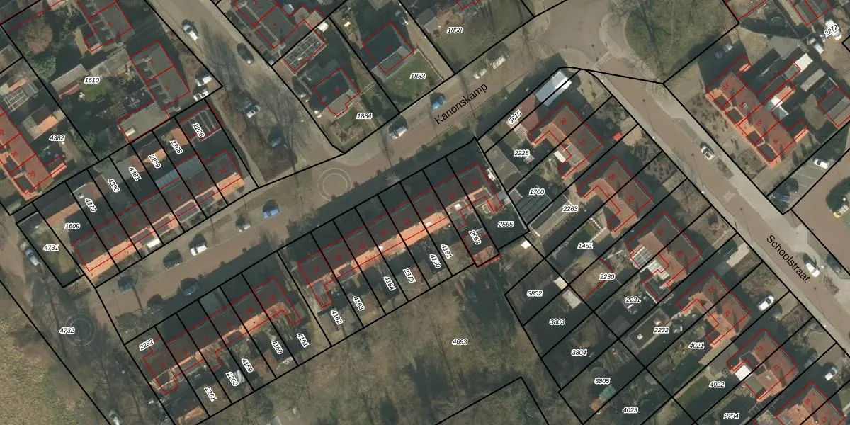 Het perceel waarop Kanonskamp 24 staat heeft een oppervlakte van 156 m². Dit is een middelgroot perceel. De perceeloppervlakte wordt geregistreerd door het Kadaster. Gedetailleerde informatie over de maten van dit perceel kunt u vinden in het rapport Kadastrale kaart met maatvoering van Kanonskamp 24.