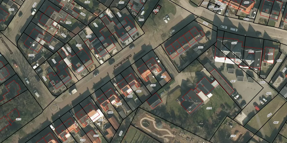 Het perceel waarop Kanonskamp 54 staat heeft een oppervlakte van 234 m². Dit is een middelgroot perceel. De perceeloppervlakte wordt geregistreerd door het Kadaster. Gedetailleerde informatie over de maten van dit perceel kunt u vinden in het rapport Kadastrale kaart met maatvoering van Kanonskamp 54.