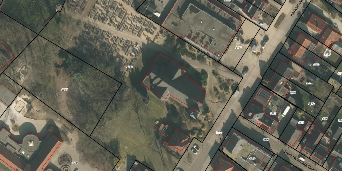 Het perceel waarop Kerkstraat 27 staat heeft een oppervlakte van 7509 m². Dit is een zeer groot perceel. De perceeloppervlakte wordt geregistreerd door het Kadaster. Gedetailleerde informatie over de maten van dit perceel kunt u vinden in het rapport Kadastrale kaart met maatvoering van Kerkstraat 27.