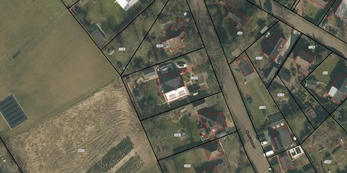 Het perceel waarop Oudebaan 61 staat heeft een oppervlakte van 1420 m². Dit is een zeer groot perceel. De perceeloppervlakte wordt geregistreerd door het Kadaster. Gedetailleerde informatie over de maten van dit perceel kunt u vinden in het rapport Kadastrale kaart met maatvoering van Oudebaan 61.