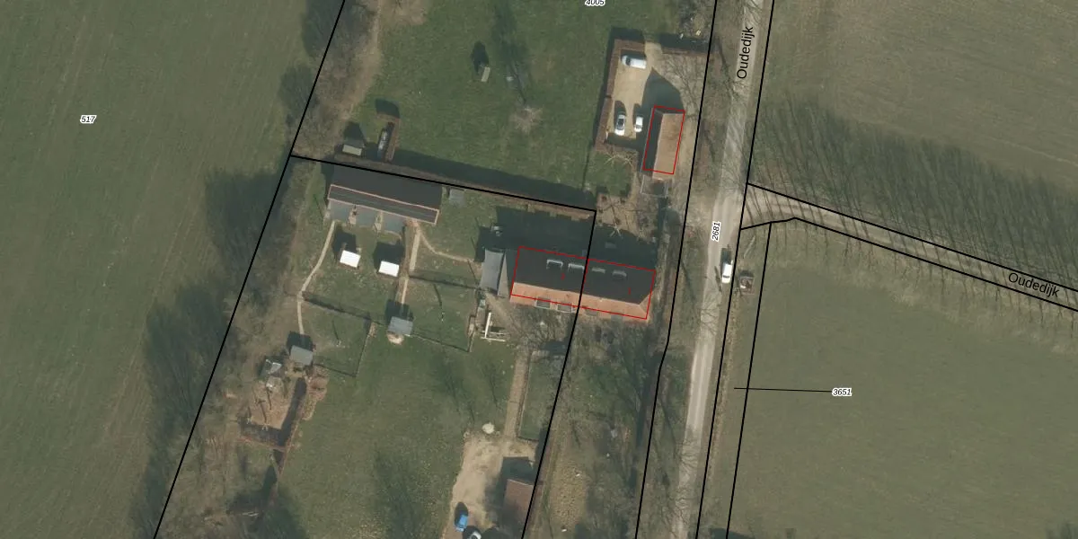 Het perceel waarop Oudedijk 3 staat heeft een oppervlakte van 1,0 ha. Dit is een zeer groot perceel. De perceeloppervlakte wordt geregistreerd door het Kadaster. Gedetailleerde informatie over de maten van dit perceel kunt u vinden in het rapport Kadastrale kaart met maatvoering van Oudedijk 3.