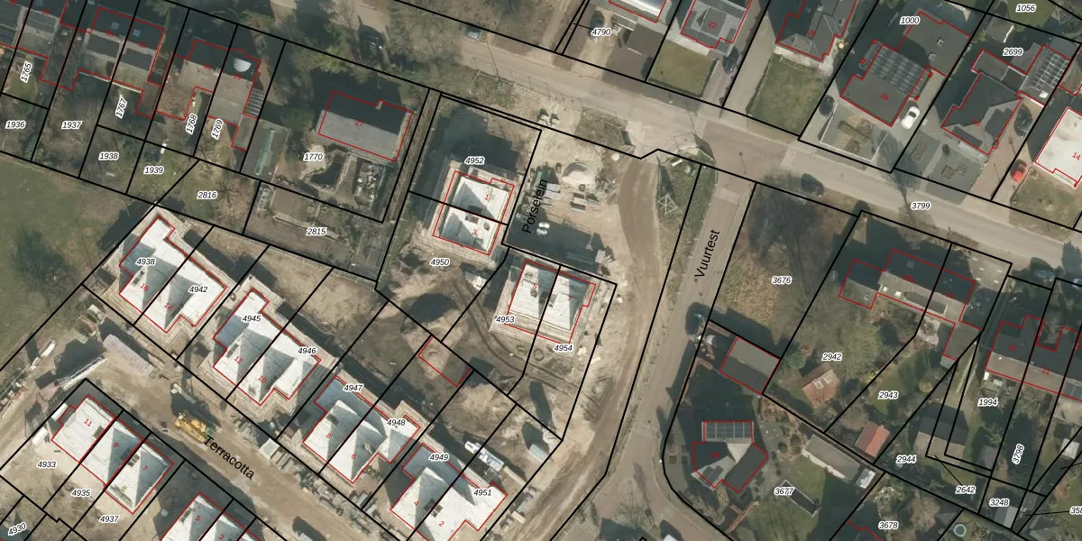 Het perceel waarop Porselein 5 staat heeft een oppervlakte van 310 m². Dit is een groot perceel. De perceeloppervlakte wordt geregistreerd door het Kadaster. Gedetailleerde informatie over de maten van dit perceel kunt u vinden in het rapport Kadastrale kaart met maatvoering van Porselein 5.