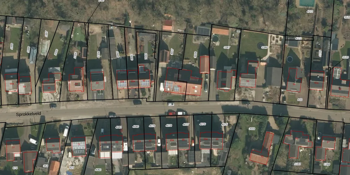 Gebruik de zoekbalk of klik op een perceel voor informatie over de adressen binnen dit perceel.