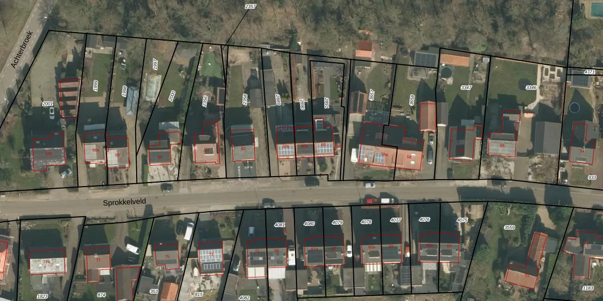 Gebruik de zoekbalk of klik op een perceel voor informatie over de adressen binnen dit perceel.