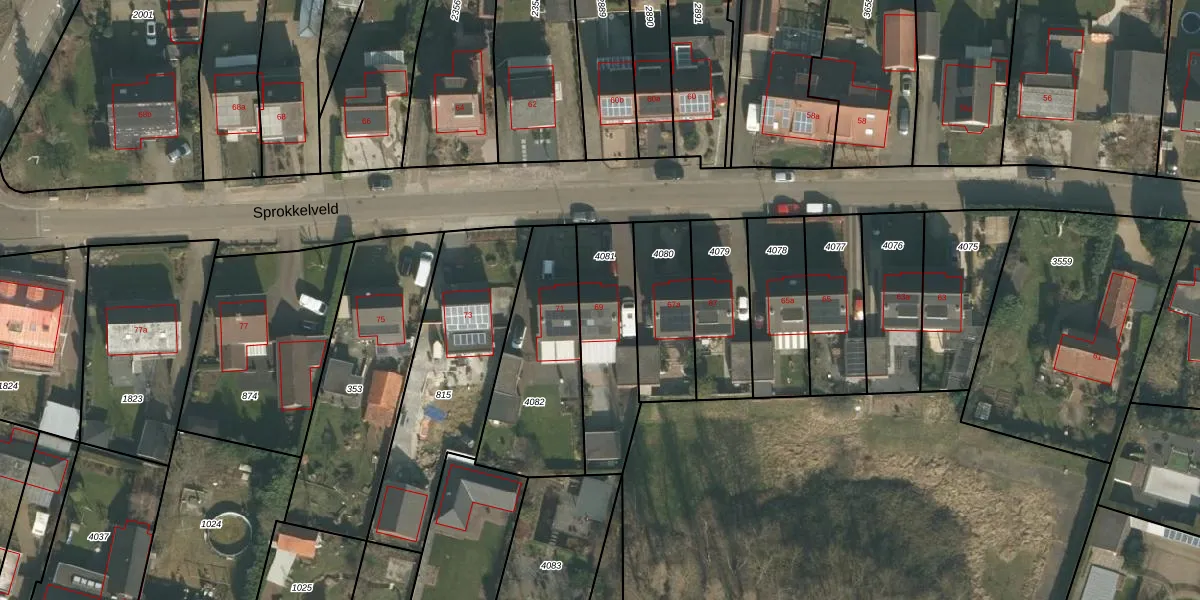 Sprokkelveld 69 is gelegen op kadastraal perceel OTS00D4081. Deze kadastrale aanduiding is uniek en wordt gebruikt door het Kadaster om eigendomsrechten en andere zakelijke rechten vast te leggen. Het perceel maakt onderdeel uit van de kadastrale gemeente Ottersum.