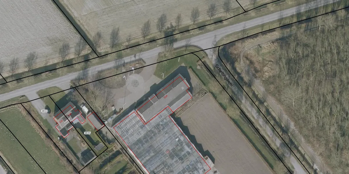 Het adres ligt op het perceel MGN01-B-3811, dat zich in de kadastrale gemeente Minnertsga bevindt. De gemiddelde perceeloppervlakte in de kadastrale gemeente Minnertsga is 6862,96 m². Dit perceel is met zijn 1,4 ha dus groter dan gemiddeld. Het kleinste perceel in de kadastrale gemeente is 1 m² groot. De grootste perceeloppervlakte is 14,5 ha. Dit is het enige adres dat aanwezig is op het perceel. De huidige grenzen van het perceel zijn digitaal in de Basisregistratie Kadaster (BRK) geregistreerd op 19-11-2010.