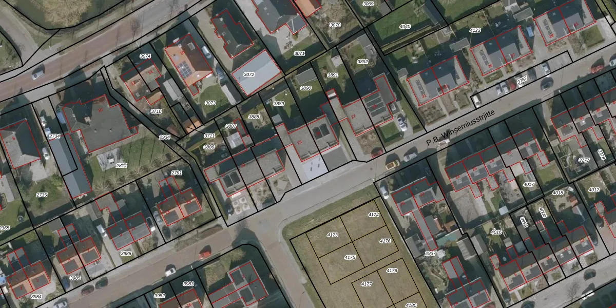 P.B. Winsemiusstrjitte 23 is gelegen op kadastraal perceel MGN01B3889. Deze kadastrale aanduiding is uniek en wordt gebruikt door het Kadaster om eigendomsrechten en andere zakelijke rechten vast te leggen. Het perceel maakt onderdeel uit van de kadastrale gemeente Minnertsga.