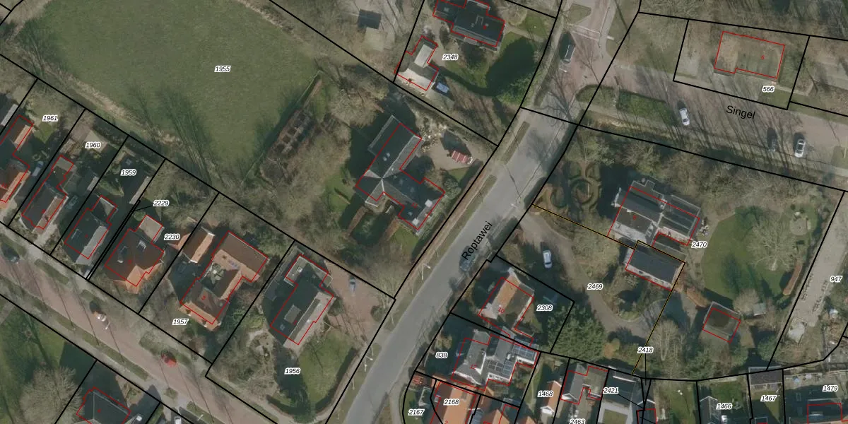 Het perceel waarop Roptawei 11 staat heeft een oppervlakte van 4785 m². Dit is een zeer groot perceel. De perceeloppervlakte wordt geregistreerd door het Kadaster. Gedetailleerde informatie over de maten van dit perceel kunt u vinden in het rapport Kadastrale kaart met maatvoering van Roptawei 11.