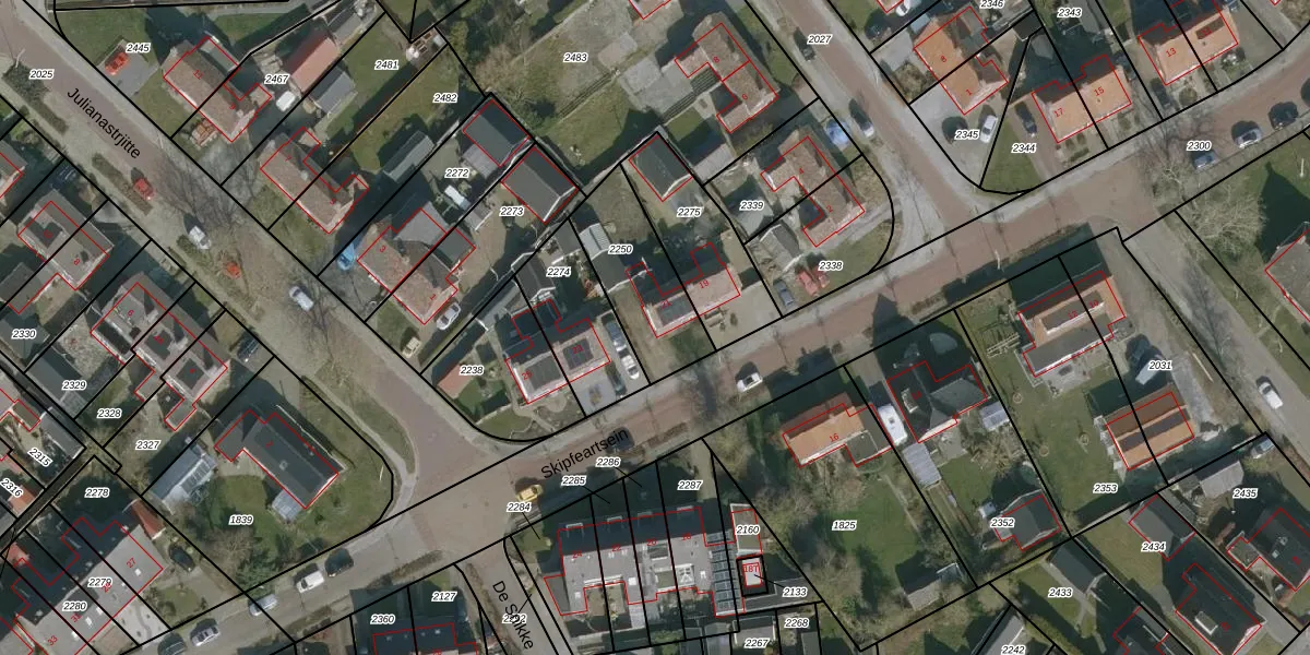 Het perceel waarop Skipfeartsein 21 staat heeft een oppervlakte van 335 m². Dit is een groot perceel. De perceeloppervlakte wordt geregistreerd door het Kadaster. Gedetailleerde informatie over de maten van dit perceel kunt u vinden in het rapport Kadastrale kaart met maatvoering van Skipfeartsein 21.