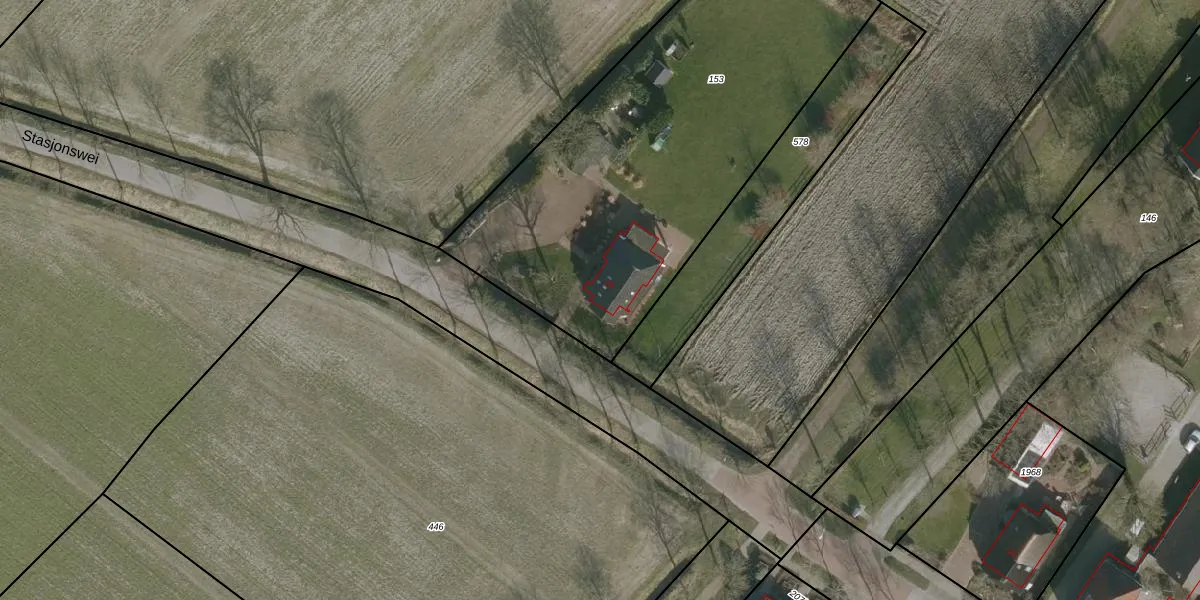 Stasjonswei 29 is gelegen op kadastraal perceel NKK02F153. Deze kadastrale aanduiding is uniek en wordt gebruikt door het Kadaster om eigendomsrechten en andere zakelijke rechten vast te leggen. Het perceel maakt onderdeel uit van de kadastrale gemeente Nijkerk Friesland.