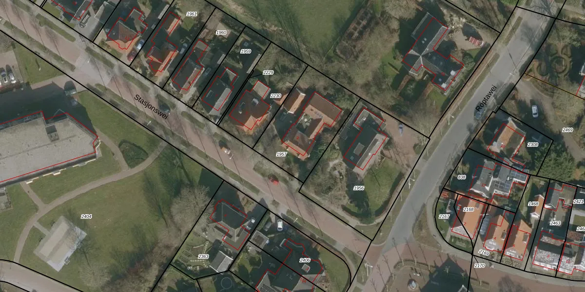 Het perceel waarop Stasjonswei 3 staat heeft een oppervlakte van 744 m². Dit is een groot perceel. De perceeloppervlakte wordt geregistreerd door het Kadaster. Gedetailleerde informatie over de maten van dit perceel kunt u vinden in het rapport Kadastrale kaart met maatvoering van Stasjonswei 3.