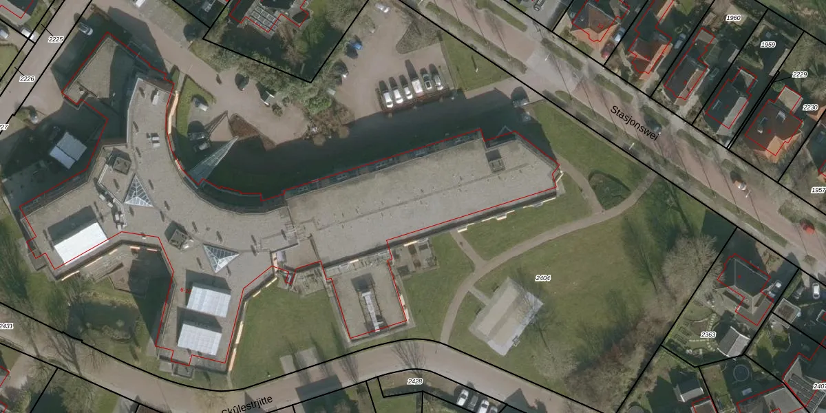 Het perceel waarop Stasjonswei 6-14 staat heeft een oppervlakte van 1,3 ha. Dit is een zeer groot perceel. De perceeloppervlakte wordt geregistreerd door het Kadaster. Gedetailleerde informatie over de maten van dit perceel kunt u vinden in het rapport Kadastrale kaart met maatvoering van Stasjonswei 6-14.