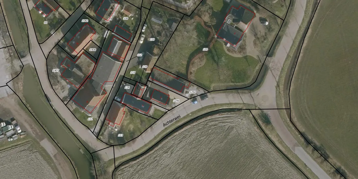 Achterwei 1 is gelegen op kadastraal perceel AJM00G1250. Deze kadastrale aanduiding is uniek en wordt gebruikt door het Kadaster om eigendomsrechten en andere zakelijke rechten vast te leggen. Het perceel maakt onderdeel uit van de kadastrale gemeente Anjum.