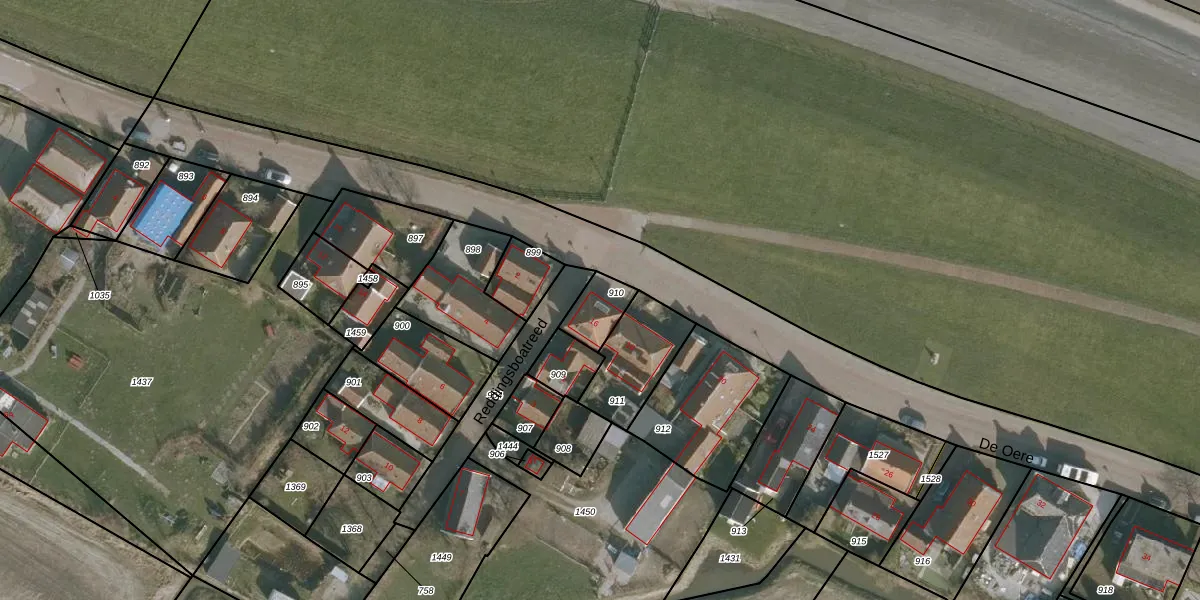Het perceel waarop De Oere 16 staat heeft een oppervlakte van 91 m². Dit is een klein perceel. De perceeloppervlakte wordt geregistreerd door het Kadaster. Gedetailleerde informatie over de maten van dit perceel kunt u vinden in het rapport Kadastrale kaart met maatvoering van De Oere 16.